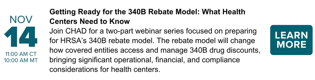 In addition to the upcoming webinars CHAD will host for our members, NACHC has announced additional trainings they are offering about the 340B Rebate Model Pilot and Inflation Reduction Act.