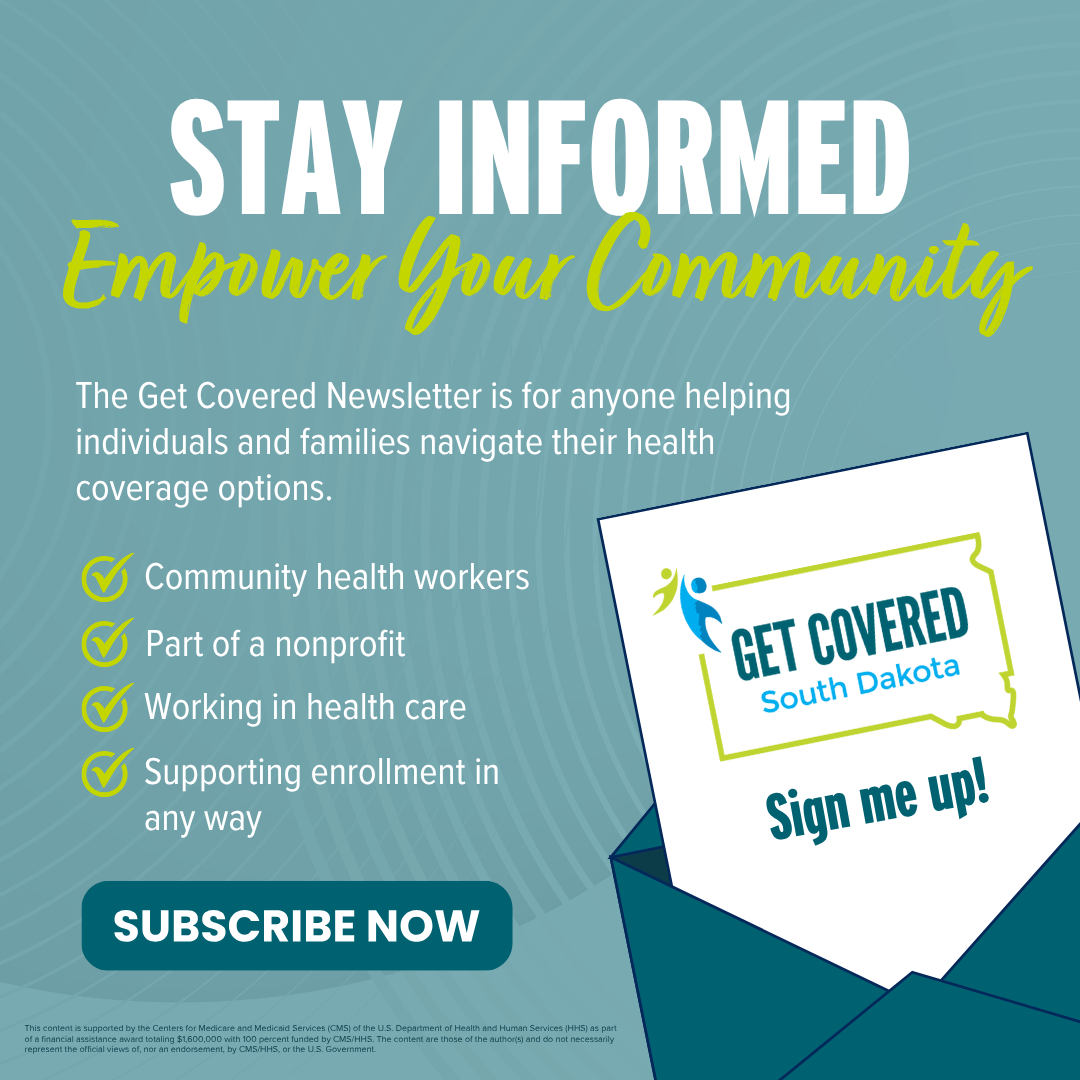 The Get Covered Newsletter is for anyone in South Dakota helping individuals and families navigate their health coverage options—whether you’re a community health