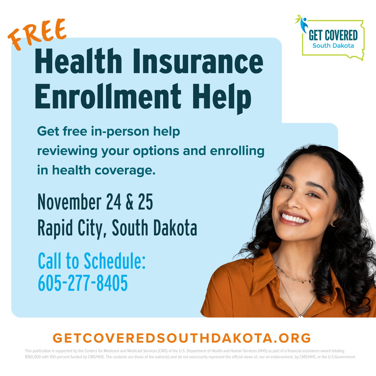 Consumers can get free, in-person help reviewing their health insurance options and enrolling in coverage during an upcoming enrollment event in Rapid City, hosted by Get Covered South Dakota.